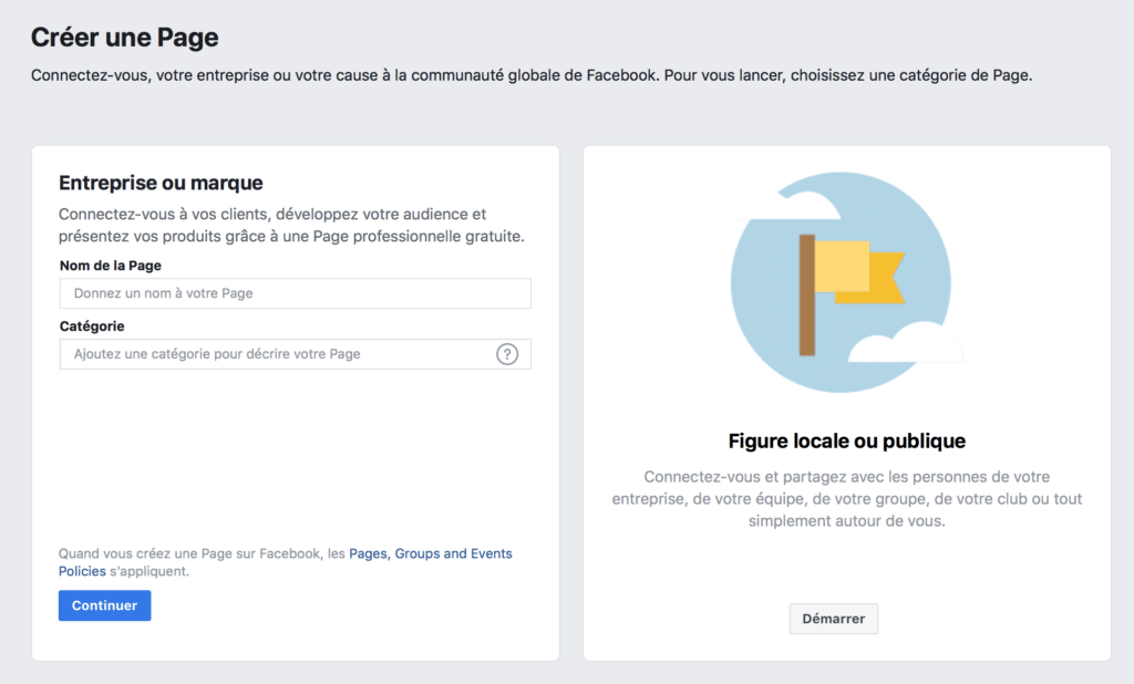 Vous pouvez également vous rendre directement au lien suivant pour créer votre page Facebook :